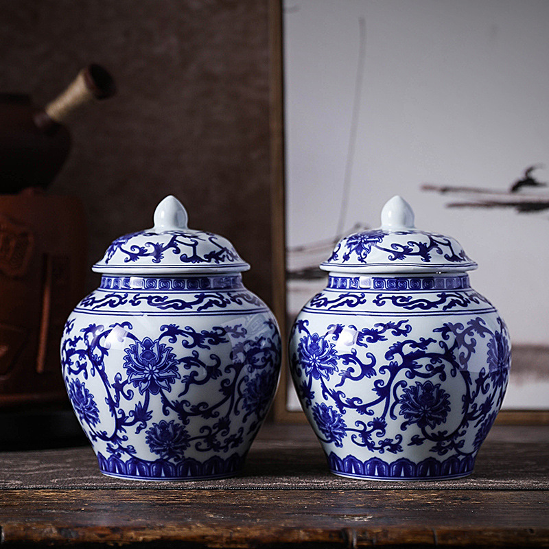 青花陶磁器茶葉缶ポータブルレトロ布バッグ茶葉包装ギフトボックス緑茶紅茶密封貯蔵缶