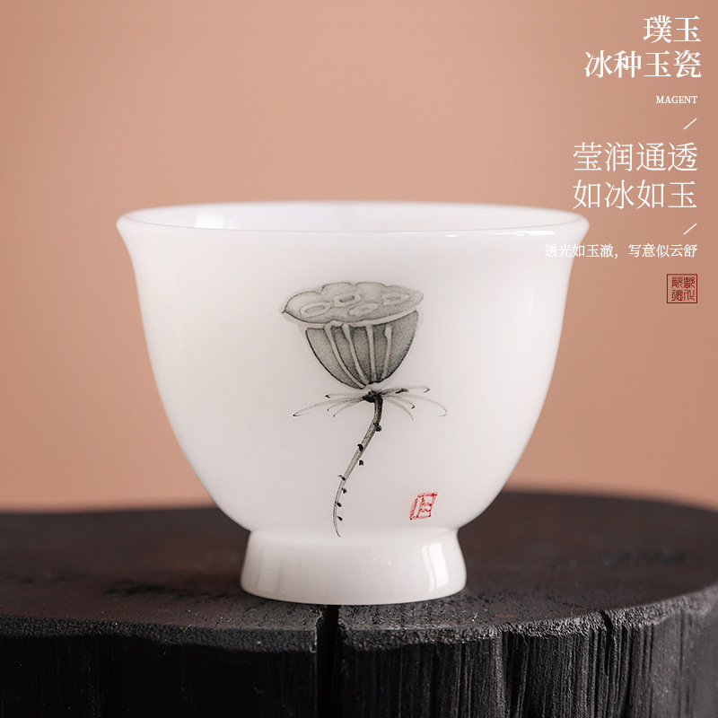 璞玉瓷手绘小号功夫小茶杯个人专用小品茗杯单个盖碗主人杯铃铛杯