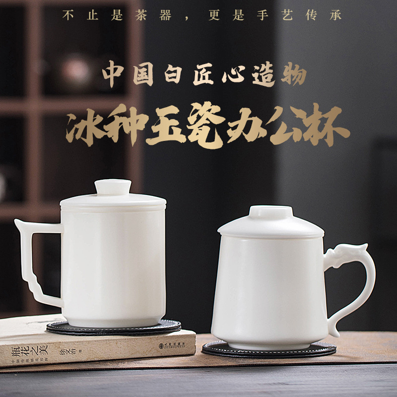 無釉薬の氷玉磁器オフィスカップ、純白の茶碗、蓋付き、ロゴ追加可能、家庭用オフィスカップ、馬年ギフトカップ