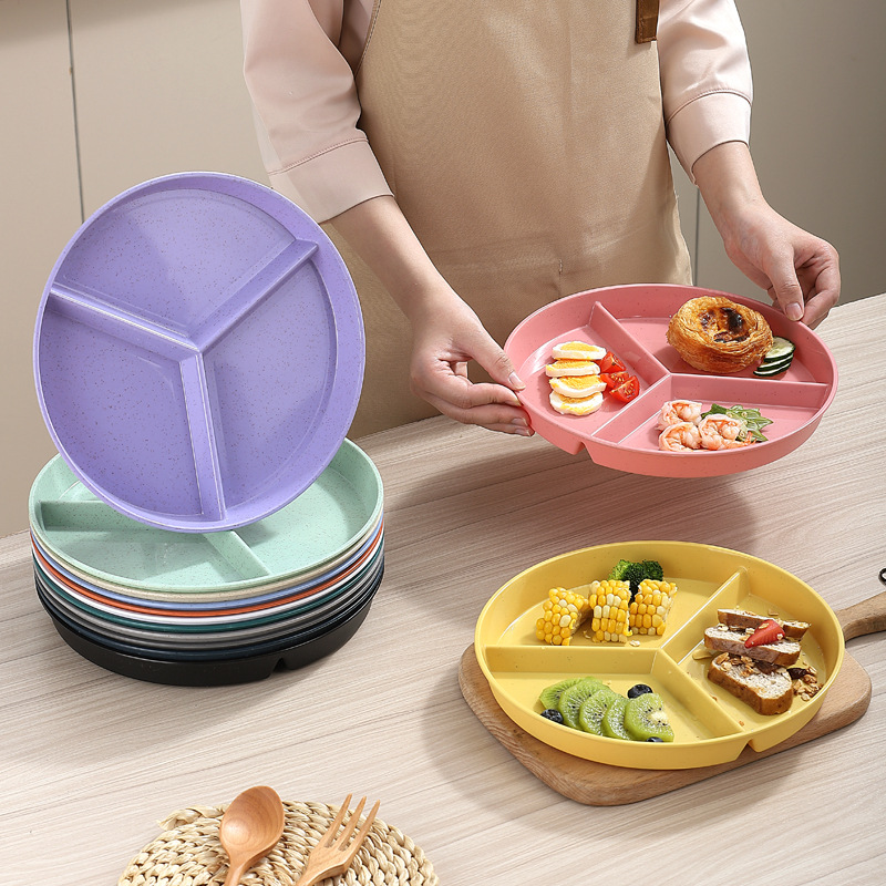 小麦わら分割ディナープレート和風高価値ラウンドプレート脂肪低減ディナープレートホームクリエイティブフルーツプレート朝食プレート