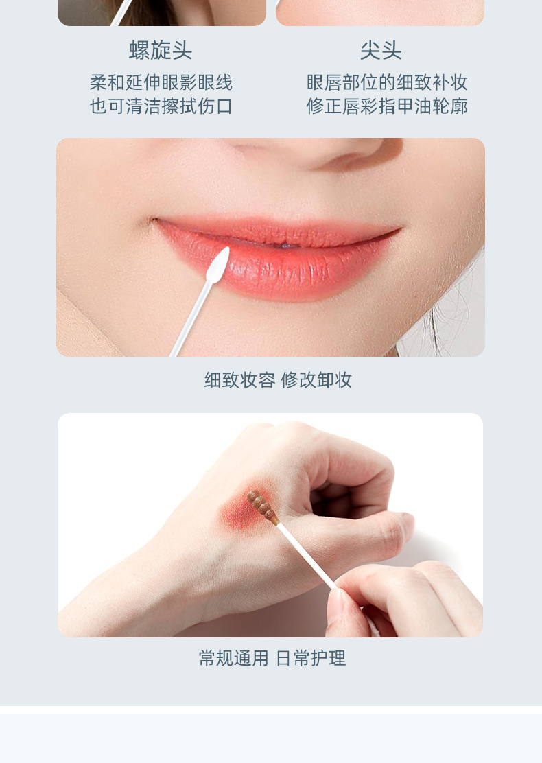 使い捨て綿棒化粧用美容双頭先先の綿棒化粧を落とす口紅の細い目の部の丸い頭の綿棒