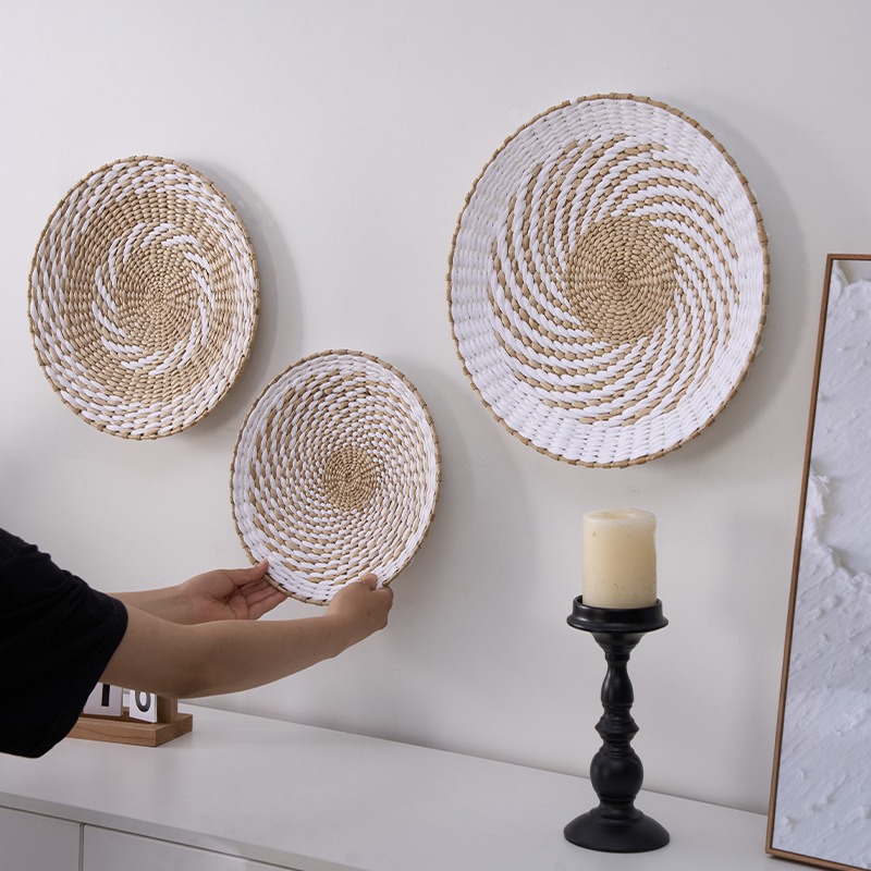 跨境手工编织墙饰客厅卧室挂墙装饰托盘墙面编织装饰外贸批发挂饰
