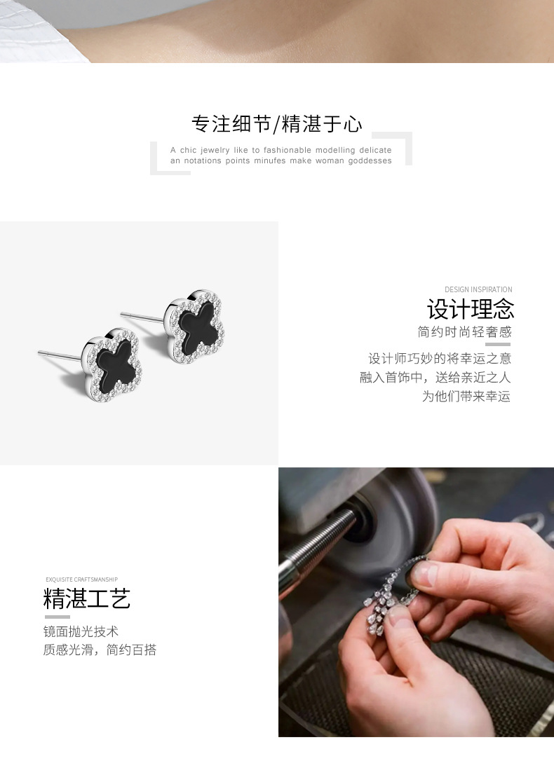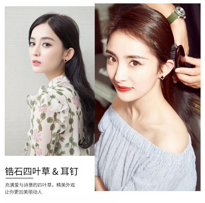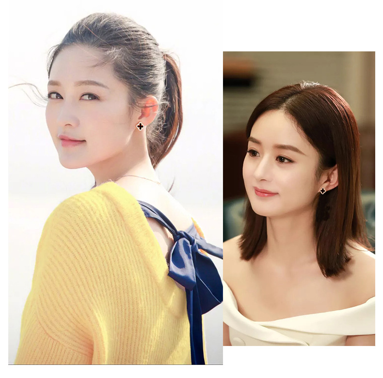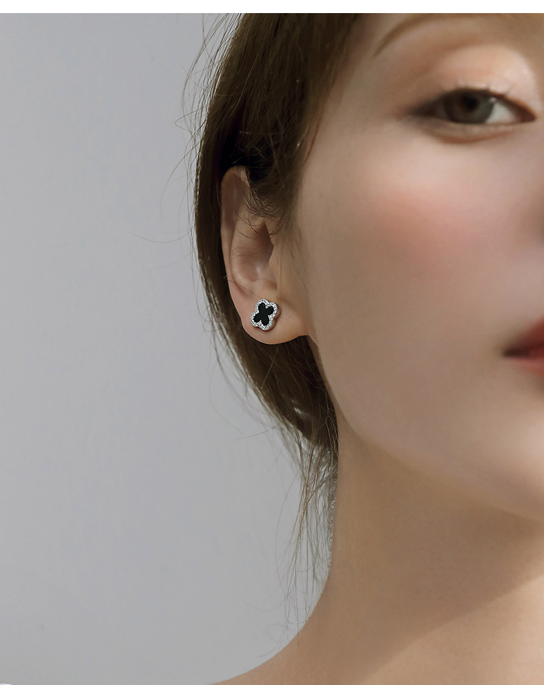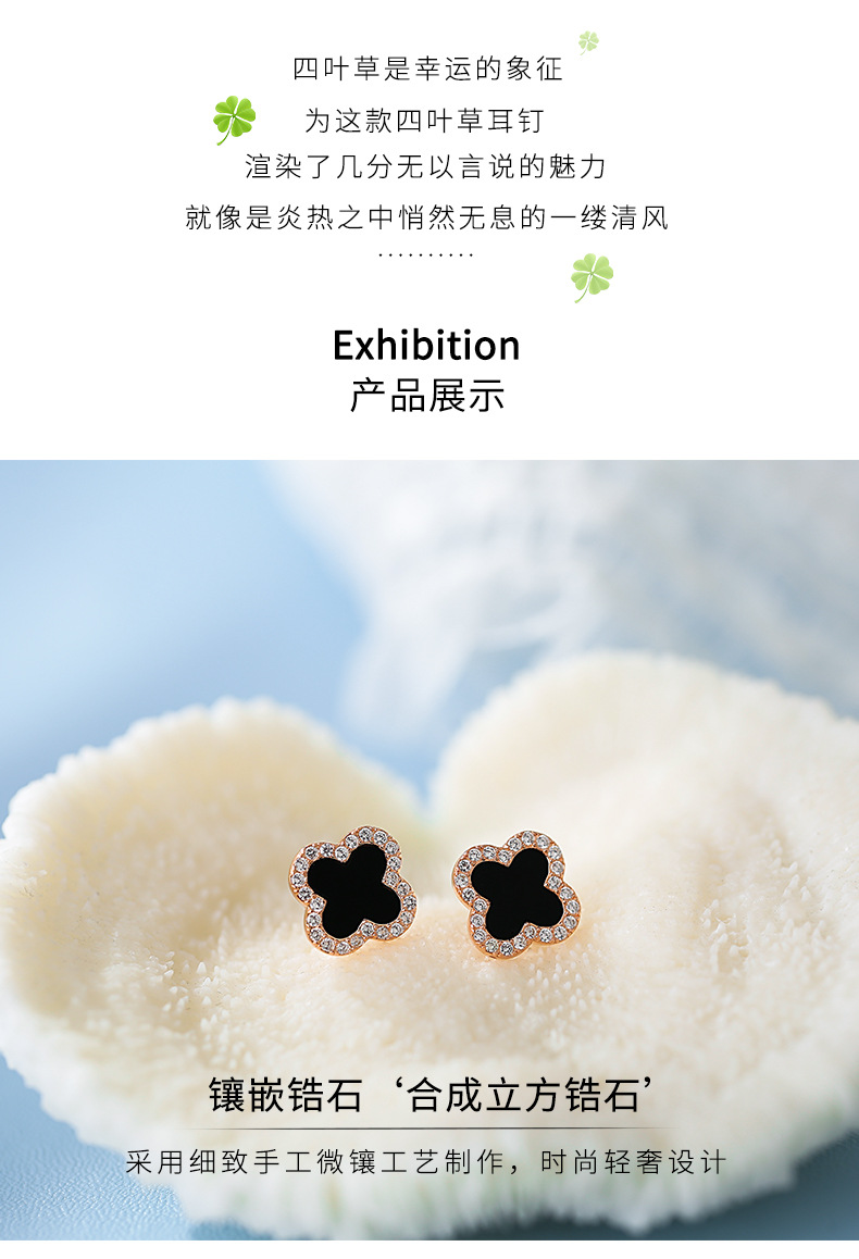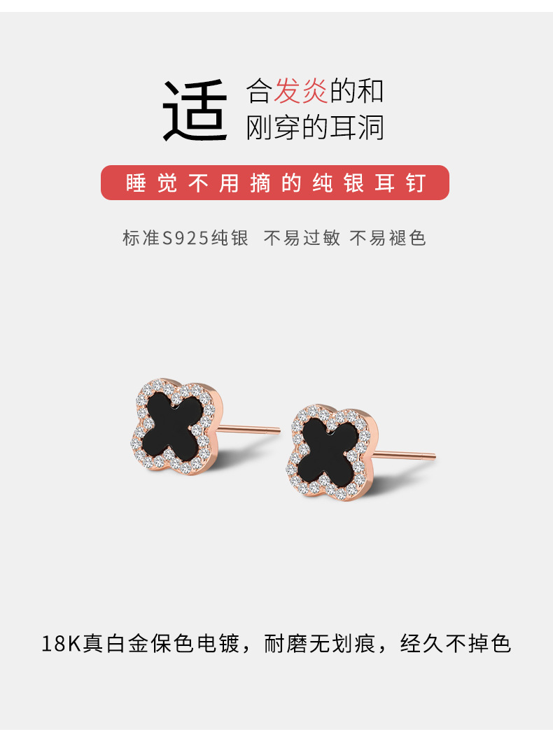 S925純銀メノウ四葉草ピアス韓国版chi気質ファッション女子高級感甘いイヤリングアクセサリー