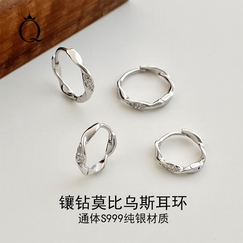 999 メビウス スターリングシルバー イヤリング、ニッチ、ハイエンド、リアルゴールドメッキ、マイクロ ダイヤモンドがちりばめられた色褪せないイヤリング
