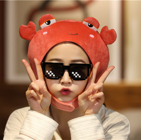 卸売りのかわいいアニメの甘い赤いカニの頭の帽子の写真を撮る道具はかわいい少女を責めます。