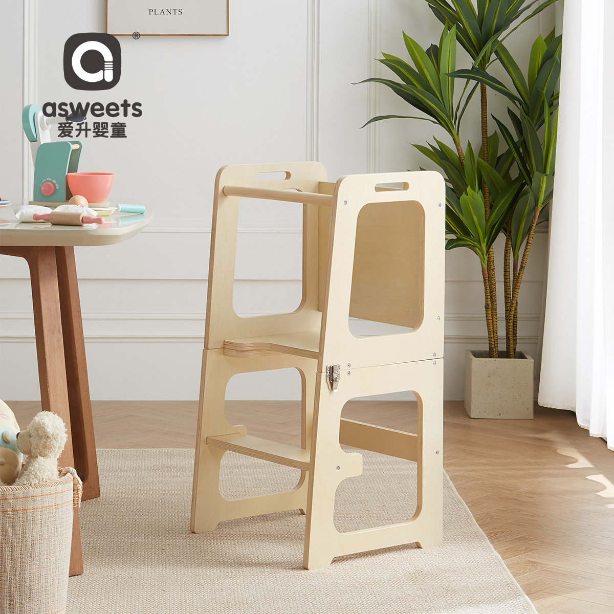 黒板のはしごを持っている赤ちゃんの手洗い腰掛け子供の成長の踏み台の多機能のテーブルと椅子の台所の腰掛けの学習塔