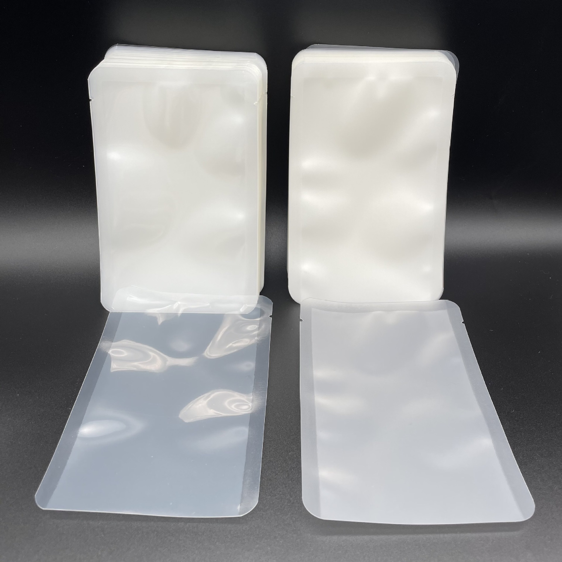 透明で厚みのある平袋、漢方クリーム、スキンケア製品、化粧品の分包用、マット加工、機械シール、密封