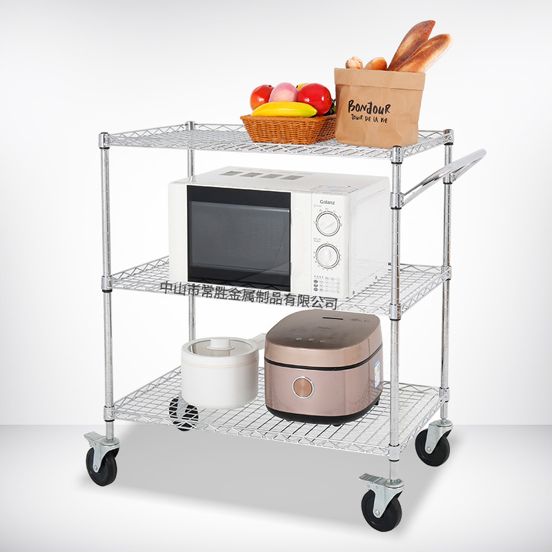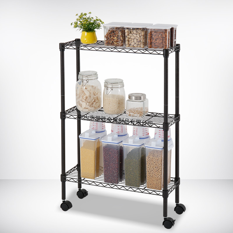 リビングルームキッチンコーナー収納ラック床置き三層取り外し可能な正方形メッシュワイヤーメタルトロリー