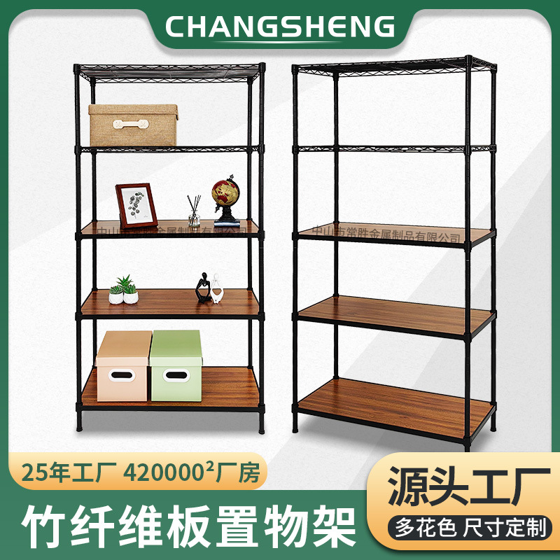 源工場線網鉄架簡易組み合わせ床置き多層竹板棚キッチンリビングルーム竹繊維棚