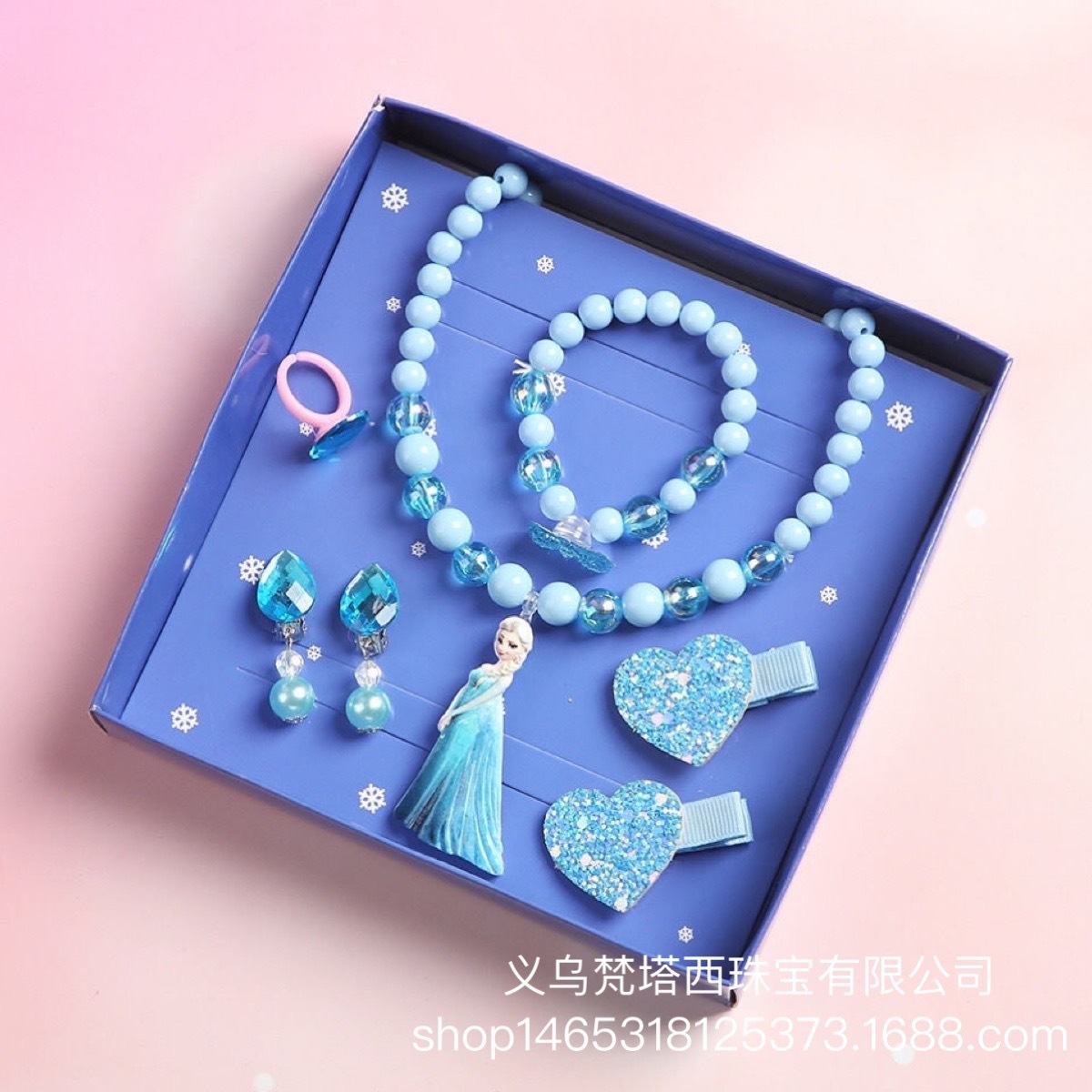 女の子ネックレスブレスレット耳クリップセットアクセサリー子供女の子ジュエリーセットネックレスアナと雪の女王ジュエリー