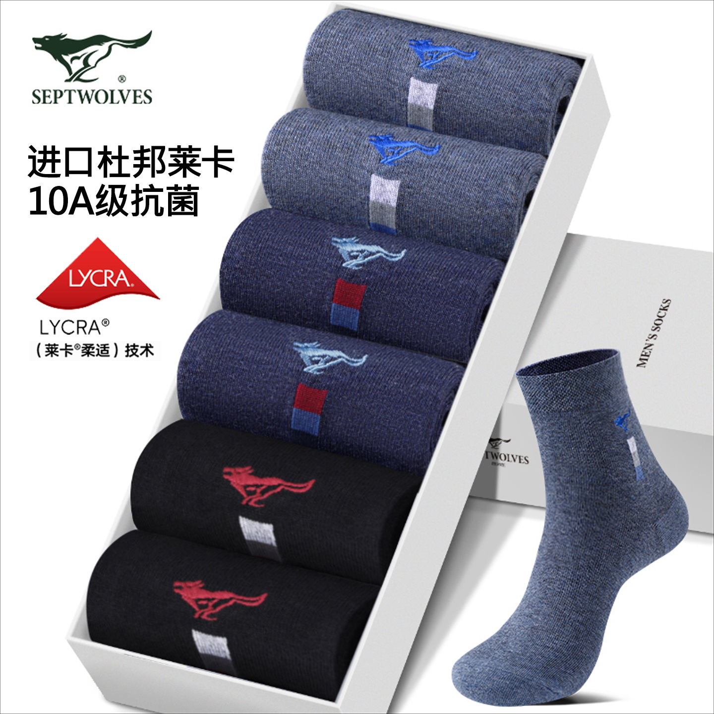 七匹狼靴下男性100% 純綿抗菌中筒靴下綿綿通気吸汗カジュアルビジネス男性靴下
