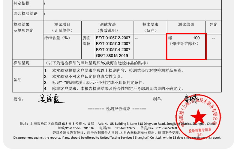 メイン生地成分含有量 100%