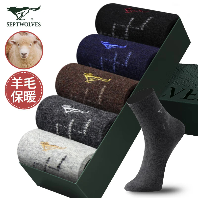 七匹狼靴下男性厚手保温男性靴下秋冬ファッションウール靴下中筒靴下5足セット靴下