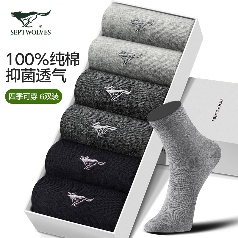 七匹狼男性靴下純綿中筒靴下男性綿綿通気ファッションカジュアル靴下男性靴下6足のケース卸売り