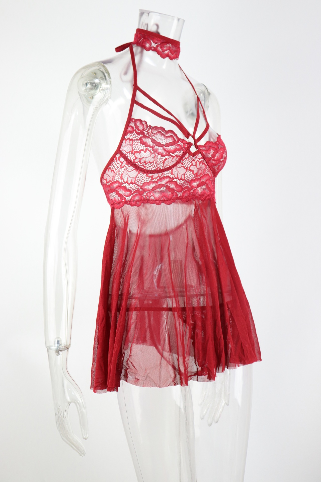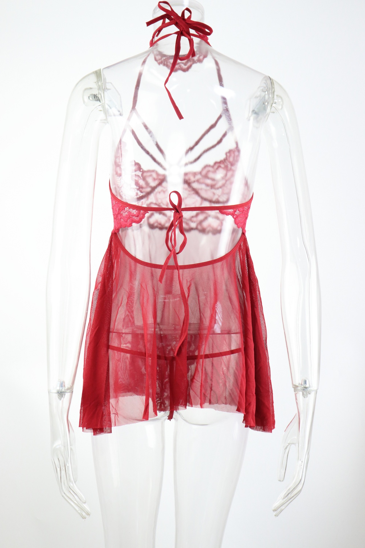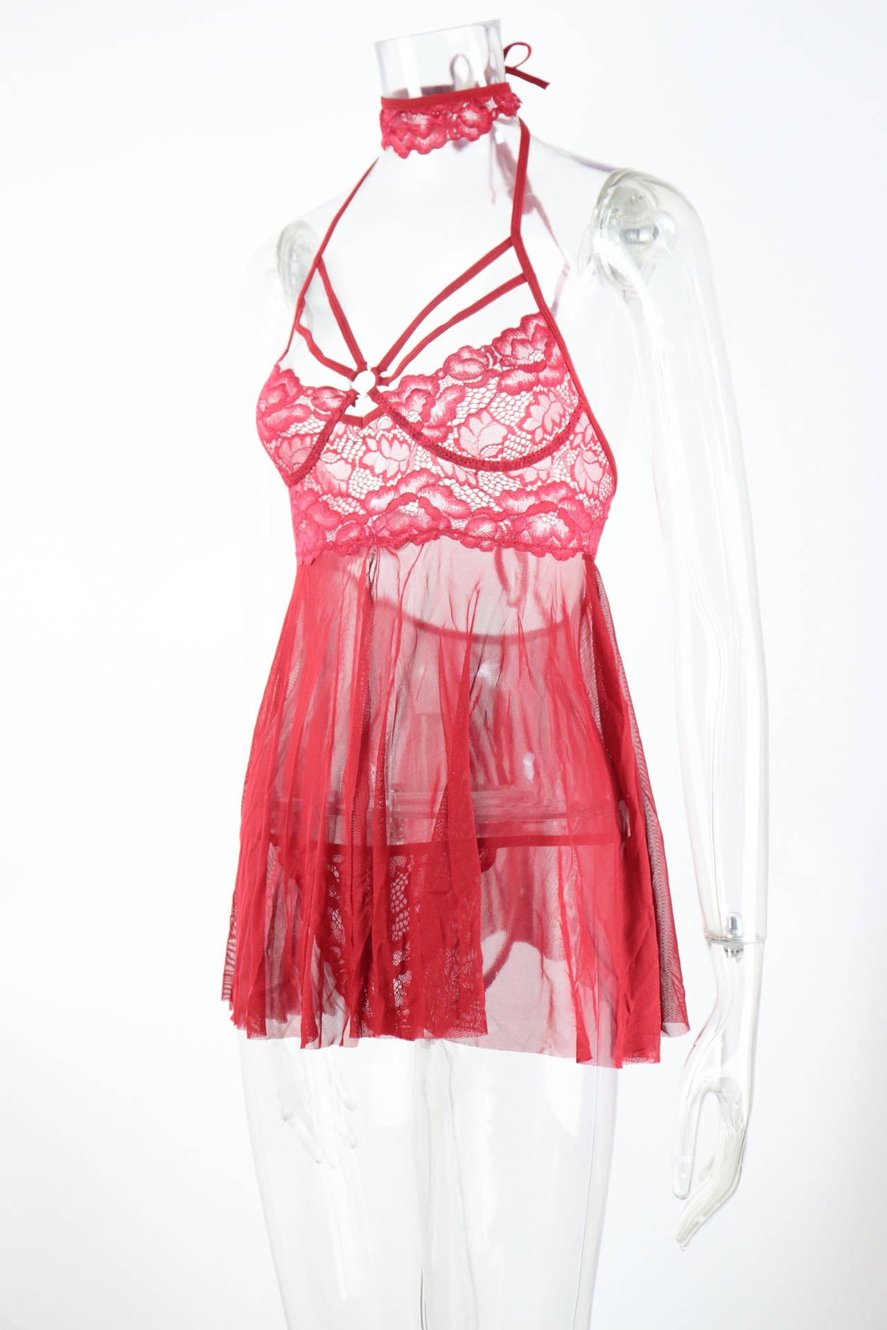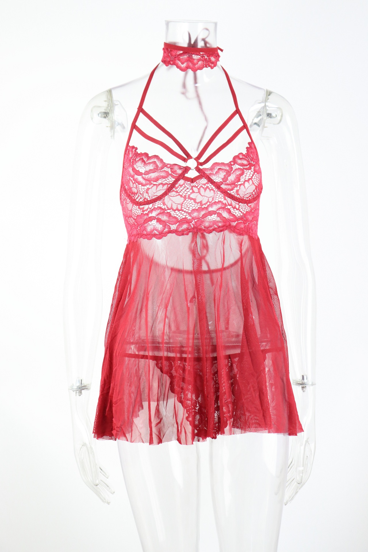 外国貿易の情緒の下着のレースの透かし彫りの誘惑の下着のガーターは首を掛けて背を現して連体の服の女性のsleepwearを現します。