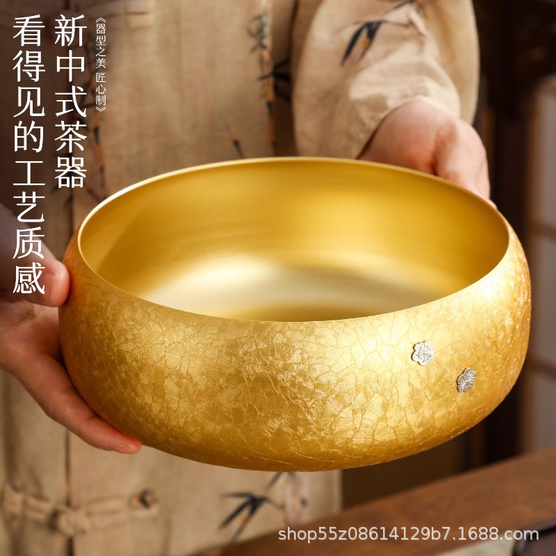 高档龙鳞金黄铜茶洗家用日式水盂建水茶渣缸铜制笔洗茶碗茶具配件