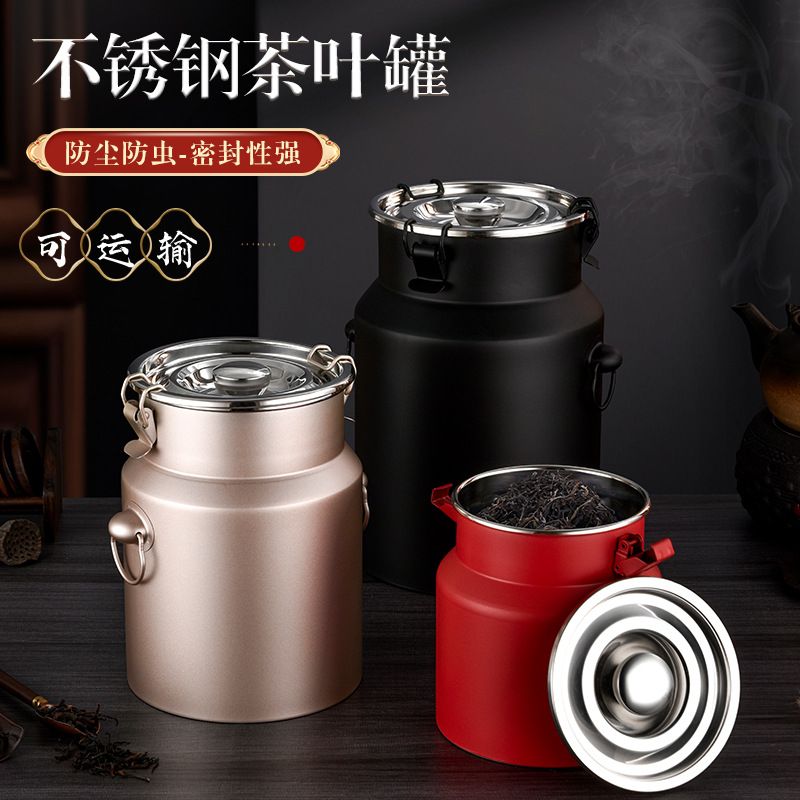 ステンレス茶葉缶ボタン密封タンク防湿防虫陳皮貯蔵タンク大容量密封タンク貯蔵タンク