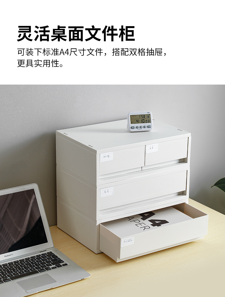 霜山抽屉式收纳盒桌面A4文件双格储物盒办公室桌下门口玄关整