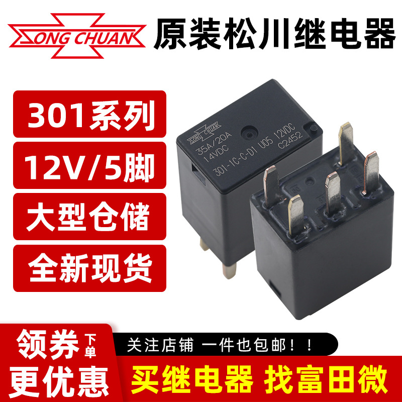 松川汽车继电器 301-1C-C-D1 U05 12VDC 5脚35A/20A 一组转换