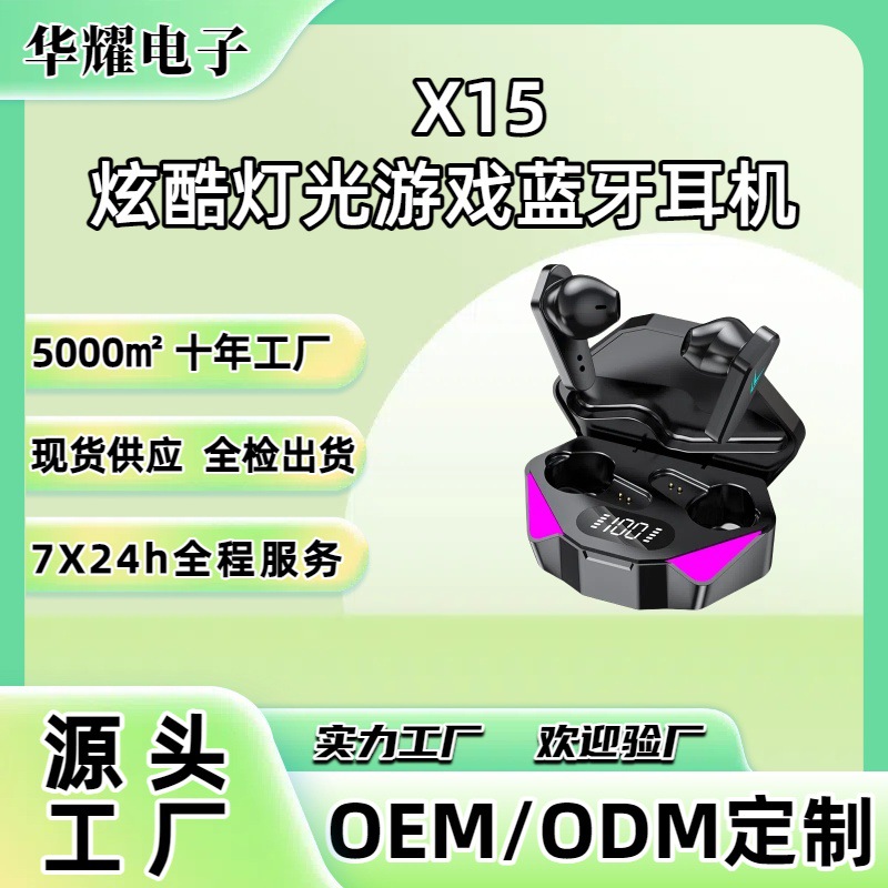 源工場現物X15無線両耳TWS電気競争低遅延低消費電力ゲーム5.3 bluetoothイヤホン