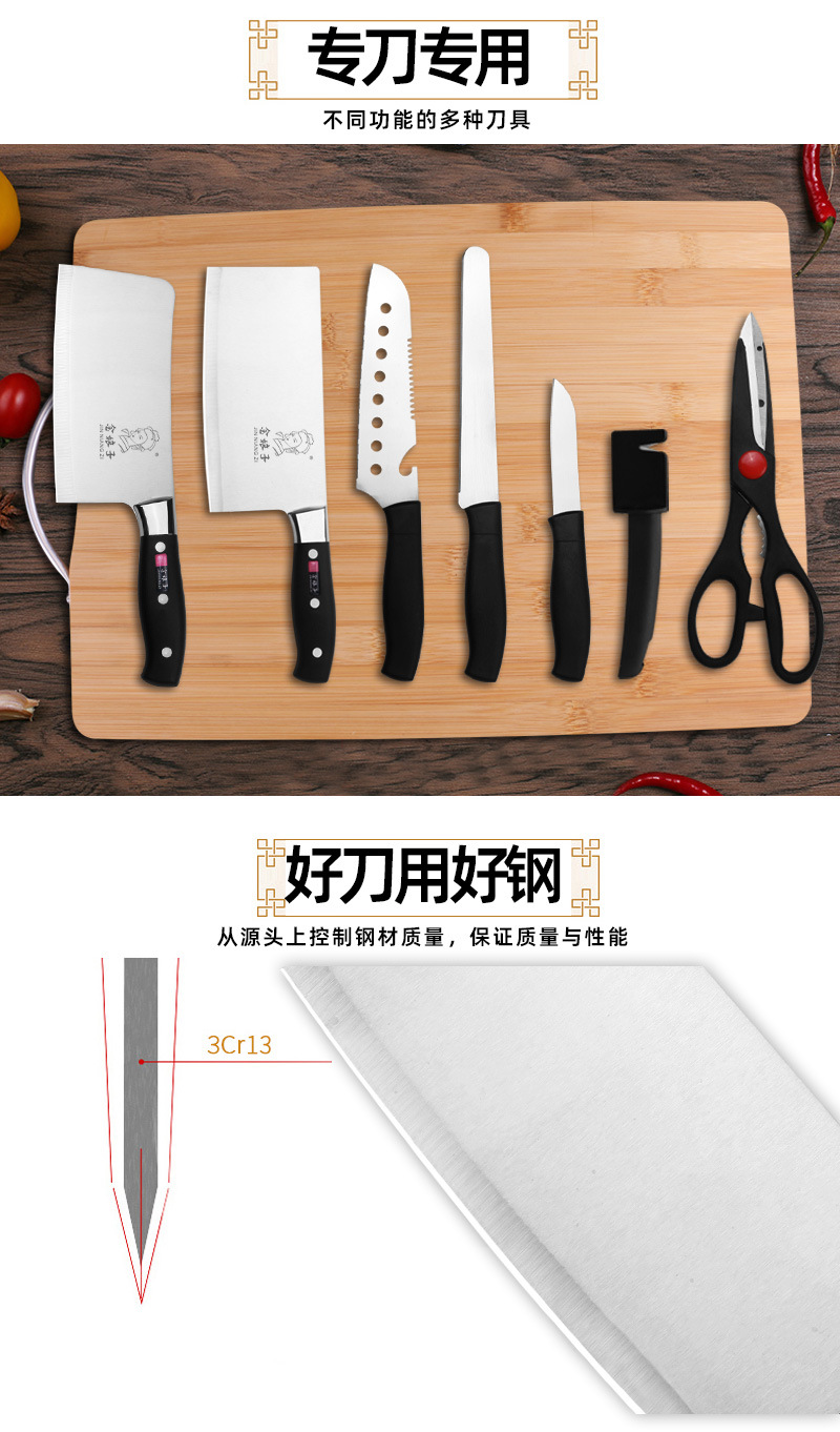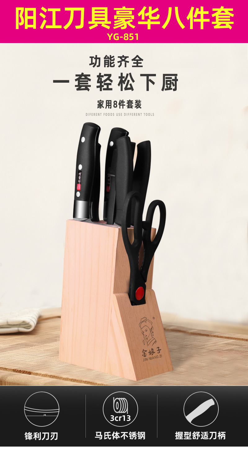 陽江メーカー製木製刀座付き8点セット包丁セット、鋭い切れ味のキッチン用包丁セット、家庭用ギフトにおすすめ