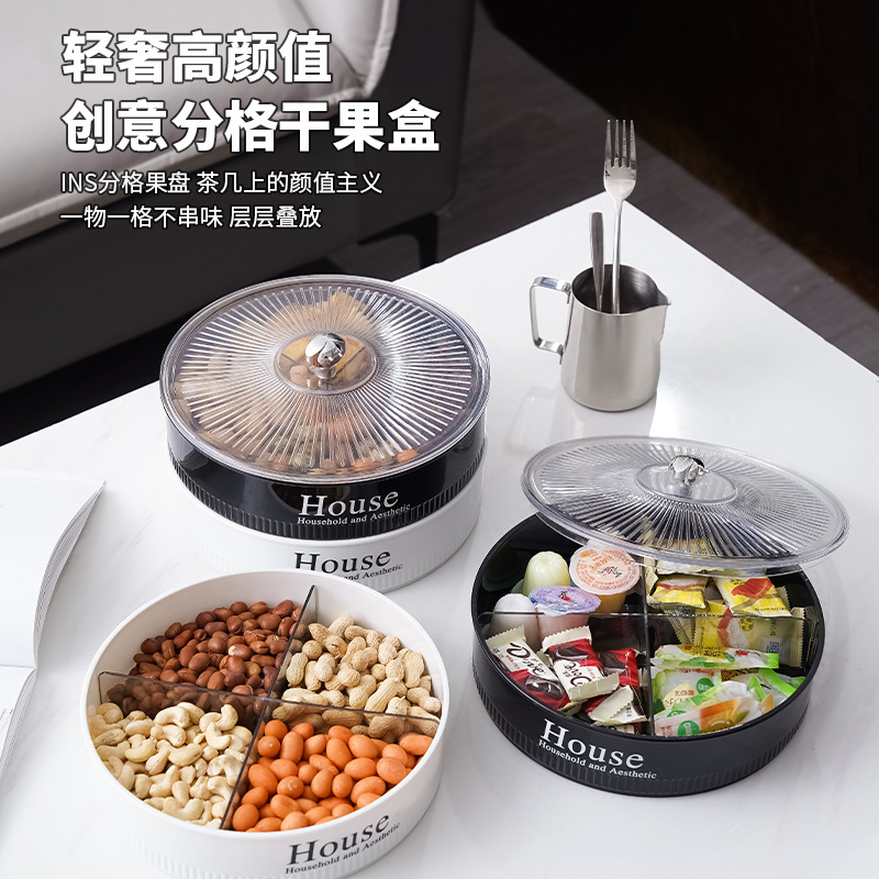 厳選された丸い果物皿蓋付き果物皿家庭用乾燥鍋皿お祝いキャンディー皿分格蓋付き果物皿客間
