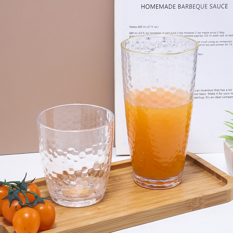 日式锤纹金边玻璃杯套装家用果汁水杯ins风简约喝水啤酒杯具套装