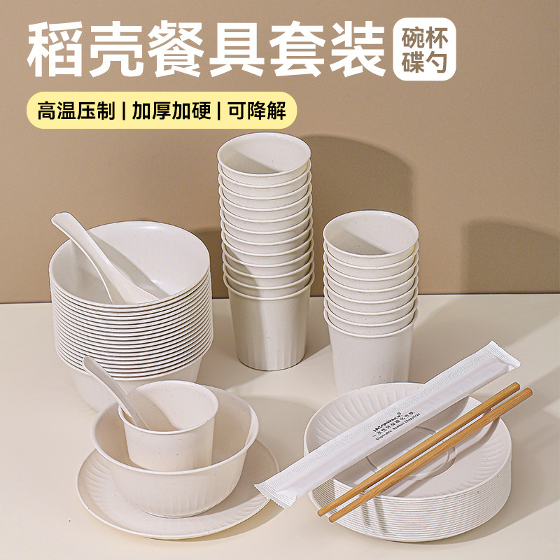 籾殻使い捨て食器食器箸セット食品級家庭用茶碗食器皿スプーンカップピクニック6点セット