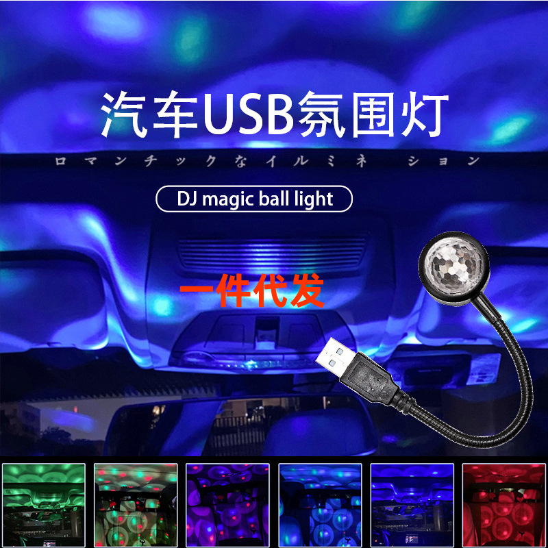 自動車魔球灯led雰囲気灯七色音控dj灯車載投影灯家庭用携帯電話usbミニランプ
