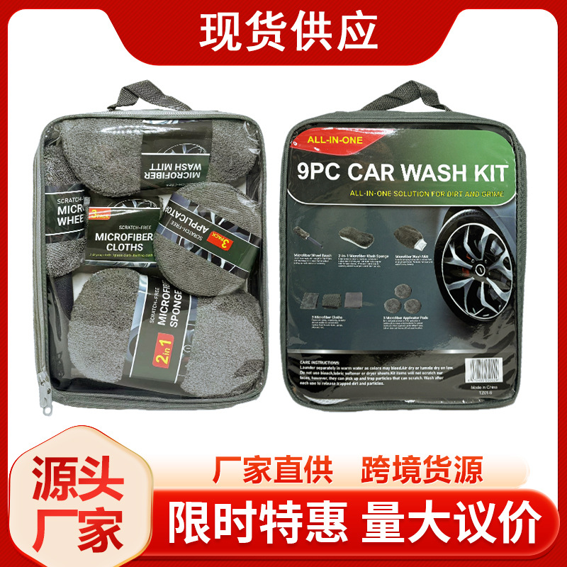 11件汽车清洁套装擦车巾家居洗车手套洗车毛巾抹布打蜡海绵轮毂刷