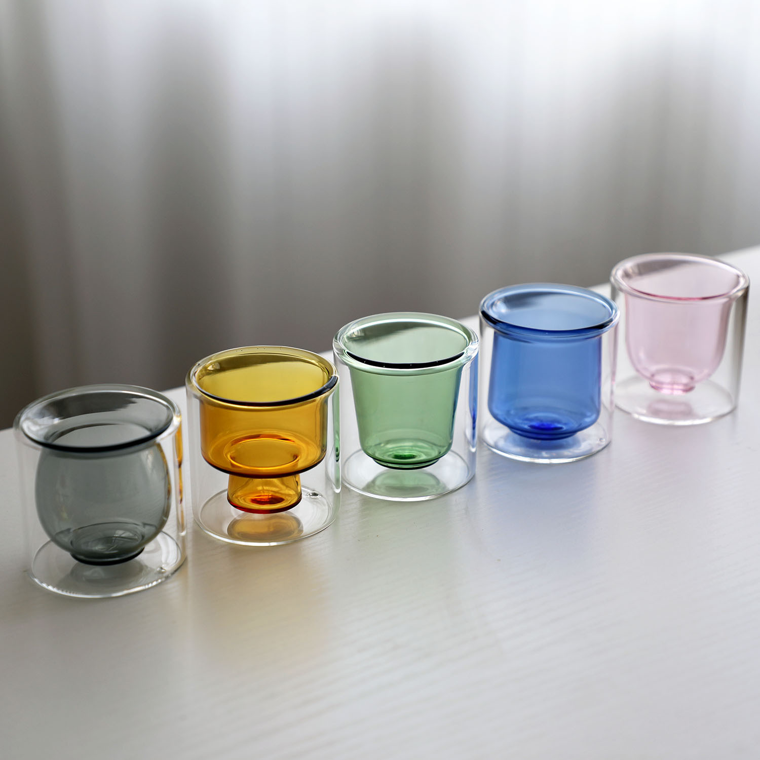 高硼硅彩色双层玻璃泡茶杯隔热防烫跨境代发家用玻璃杯创意杯子