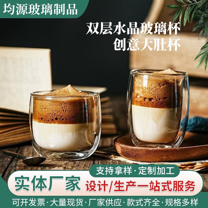 卸売り高ホウ素シリコングラス二重コップ断熱透明ガラスコップ家庭用牛乳カップガラスコーヒーカップ