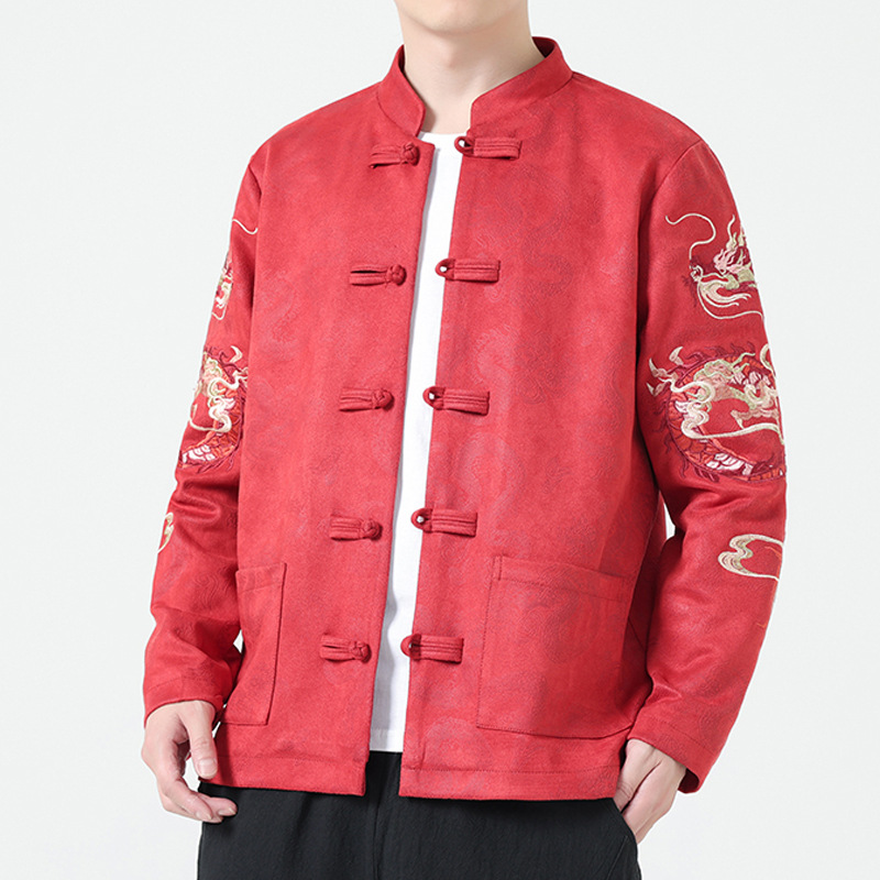 中国風のレトロな刺繍の唐服のコートの男性の新しい中国式の青年は竜年の漢服の大きいサイズの演出服のジャケットを改良します。
