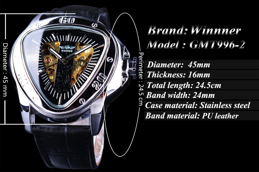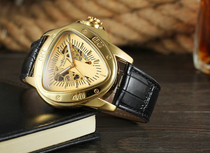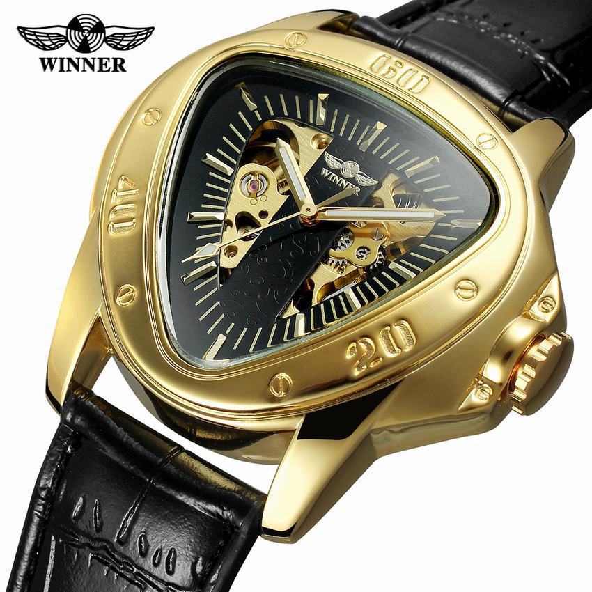 新型winner欧米風範男性ファッションカジュアル透かし彫り三角形自動機械腕時計卸売り