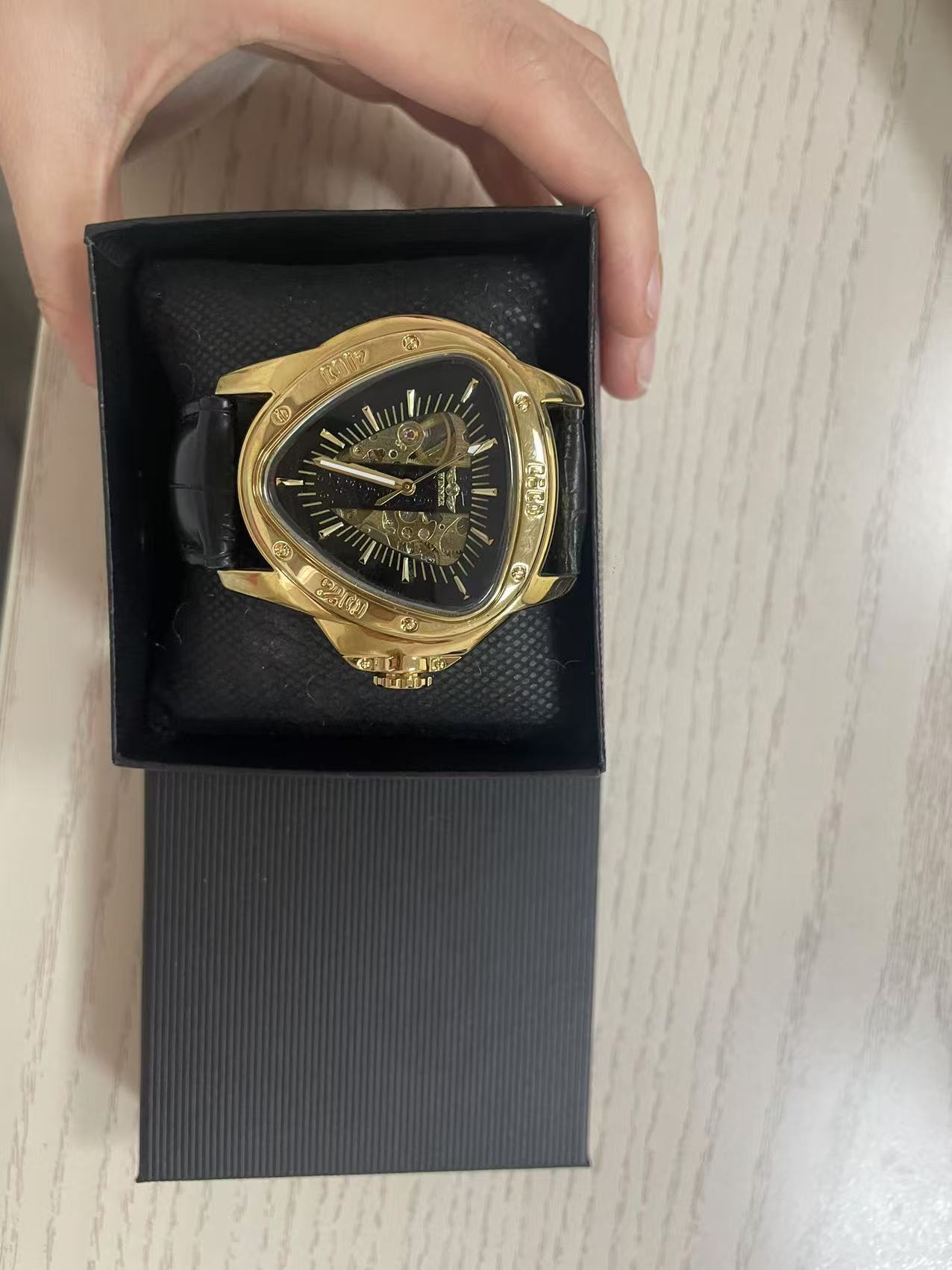 国境を越えて爆発した欧米の男性三角形腕時計ファッションカジュアル三眼六針全自動機械腕時計卸売り