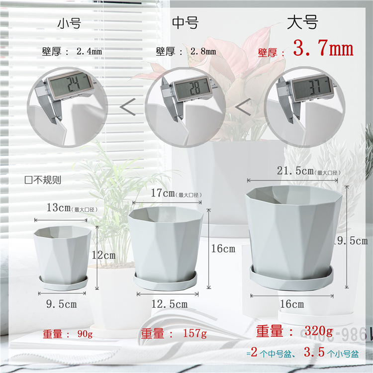 工場直販の人気商品、菱形プラスチック植木鉢、白、厚手、室内観葉植物、花、簡単盆栽、シンプルなリビングルーム用