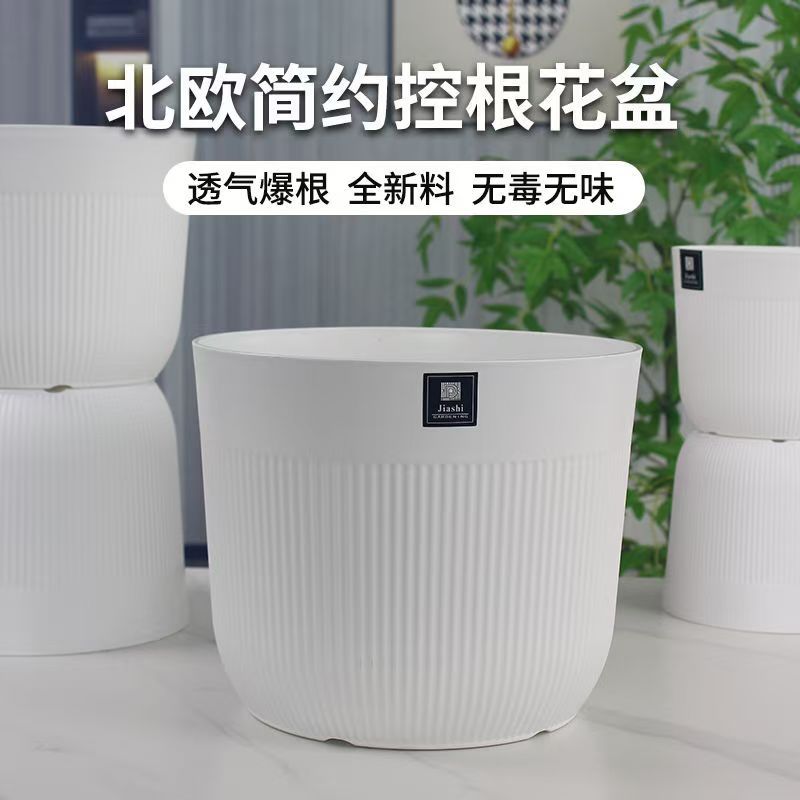 厚い純白北欧風植木鉢シンプルな円形口縦縞プラスチック植木鉢天国鳥客間ベランダ鉢植え