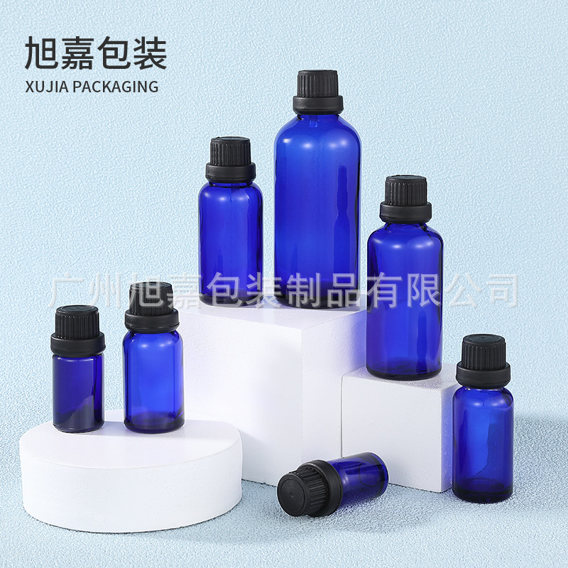 现货5ml 10ml大头防盗盖精华液瓶50ml 100ml蓝色玻璃精油分装圆瓶