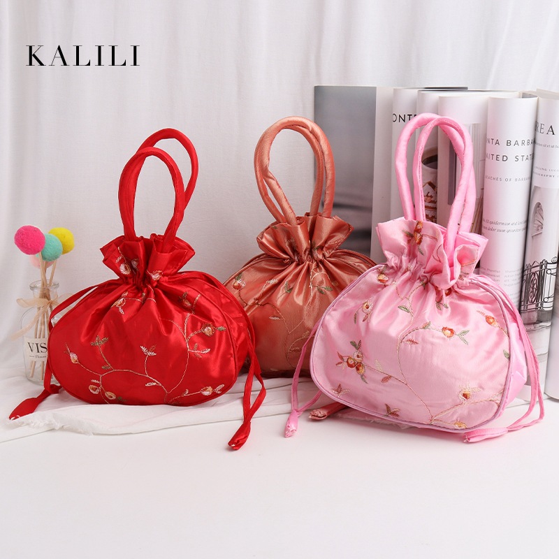見えないハンドバッグレトロな刺繍の束の口は縄の錦の袋のアクセサリーの贈り物の包装の収納袋を引き出します。