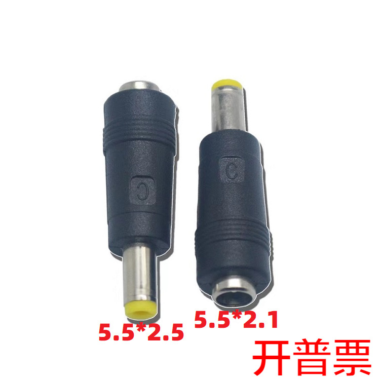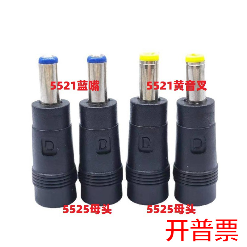 Dc 5.5*2.5メス回転5.5*2.1オス適合電源アダプタ変換ヘッド黄音叉青口プラグ5525
