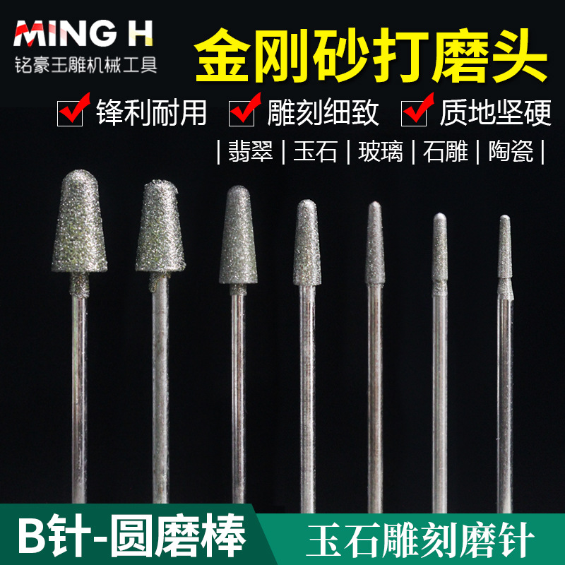 B針円頭斜棒ダイヤモンド研削ヘッドコーン逆ラッパヘッド翡翠原石皮むき窓玉彫刻工具