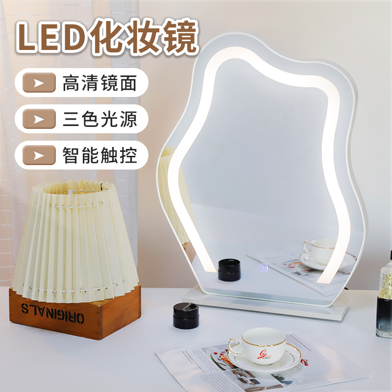 跨境云朵智能led化妆镜卧室洗手间梳妆台镜子台式带灯发光异形