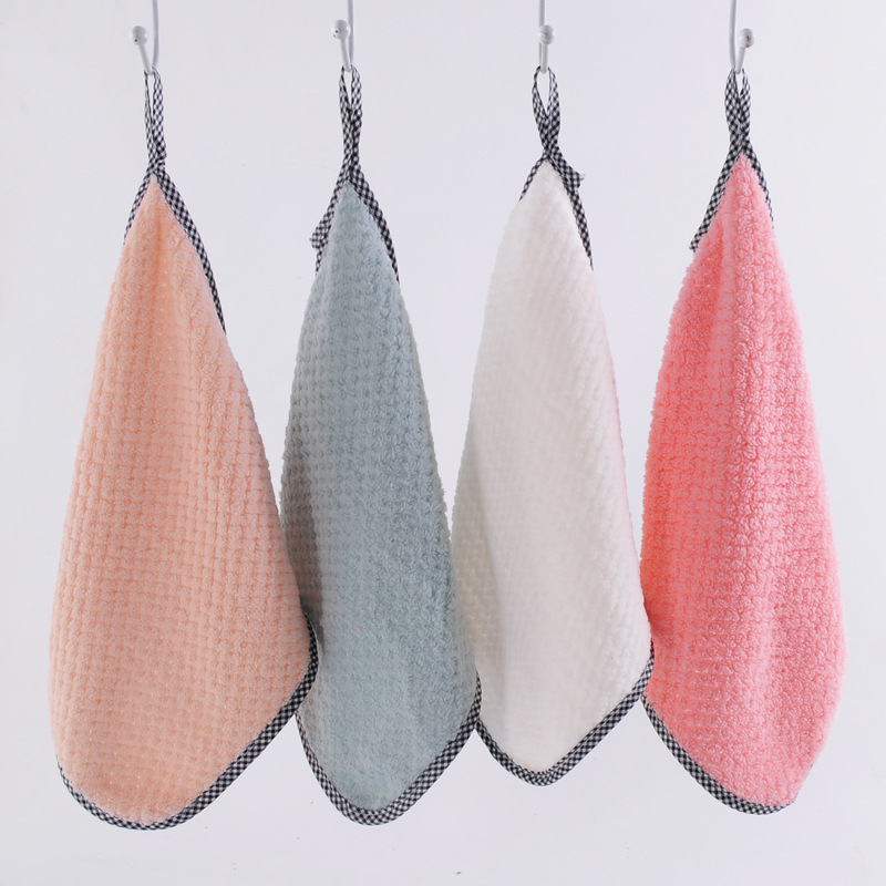 丸い点のサンゴのフリースの雑巾を厚くして吸水して食器を洗う四角いタオルの台所でテーブルを拭く家庭用のストラップ付きの手ぬぐいの新型