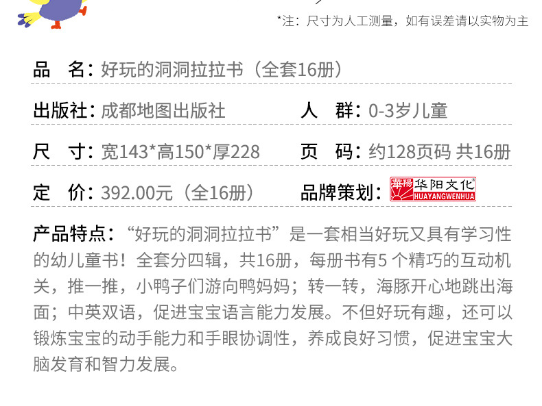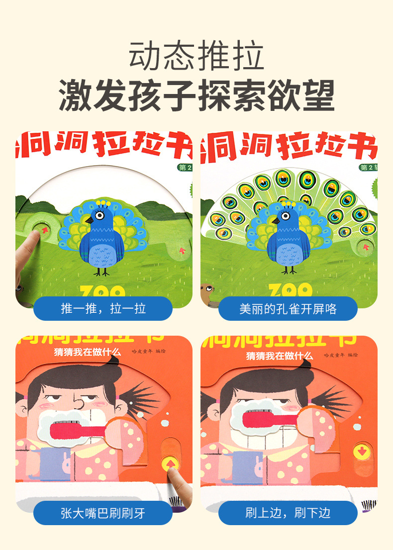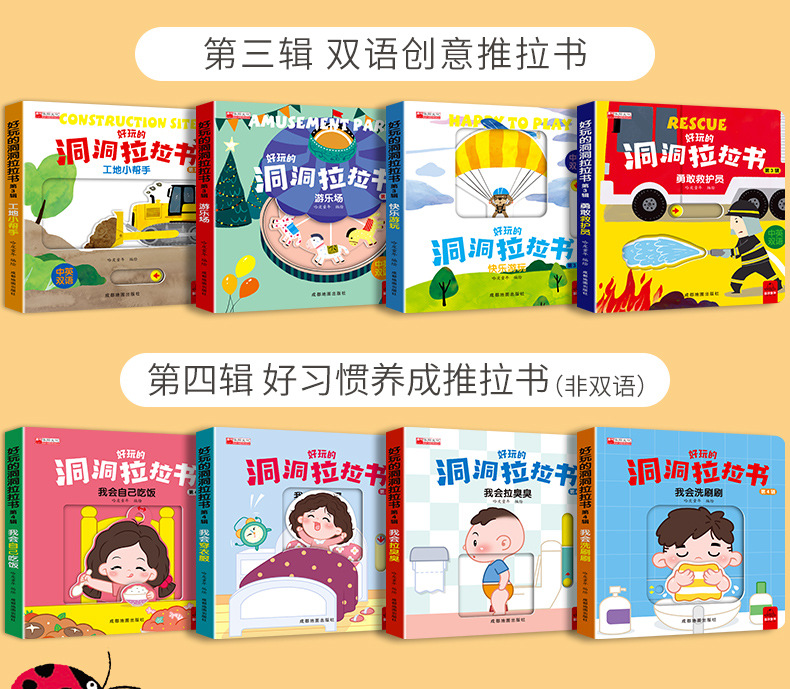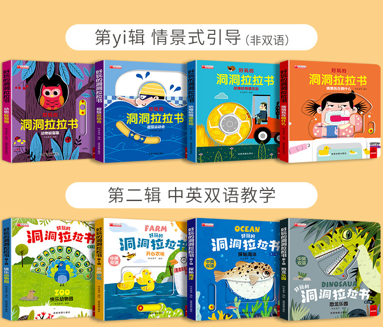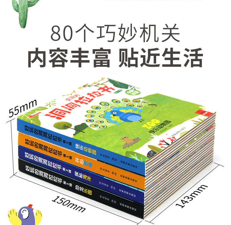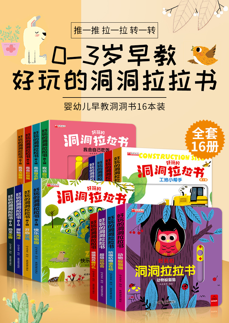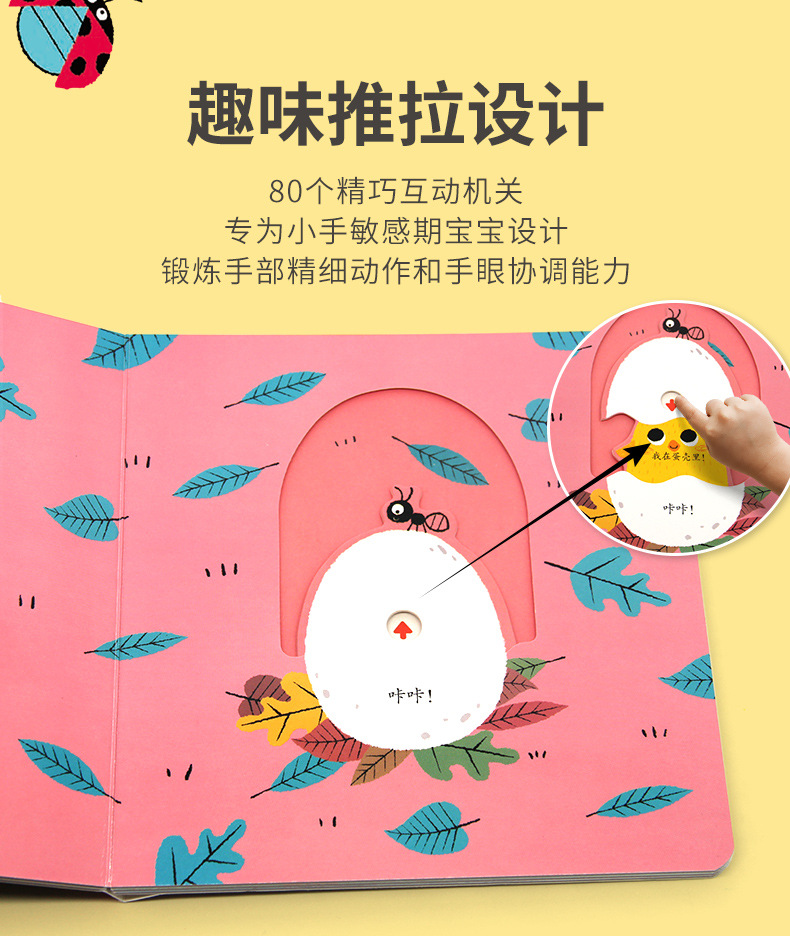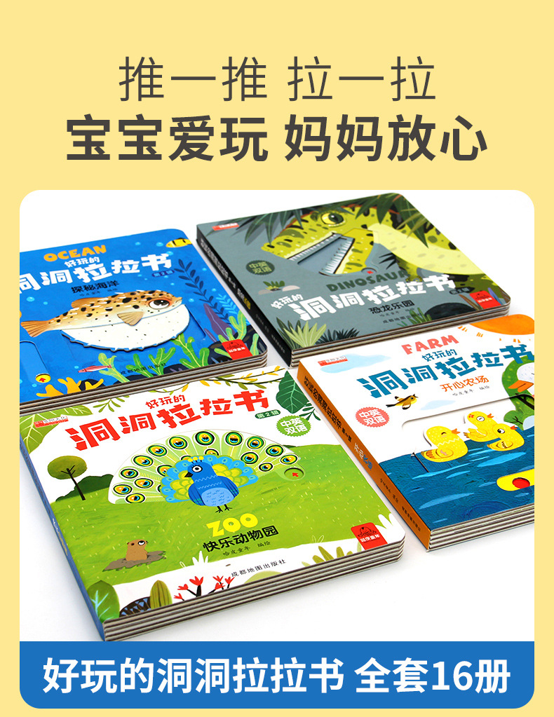 楽しい穴あきプルアンドプッシュ絵本、子供と幼児向けの16巻セット、立体的なプルアンドプッシュ式の楽しい絵本