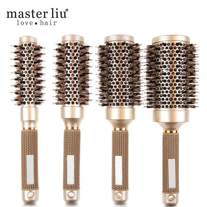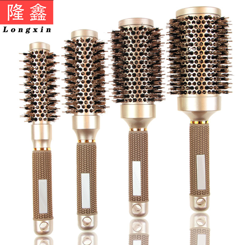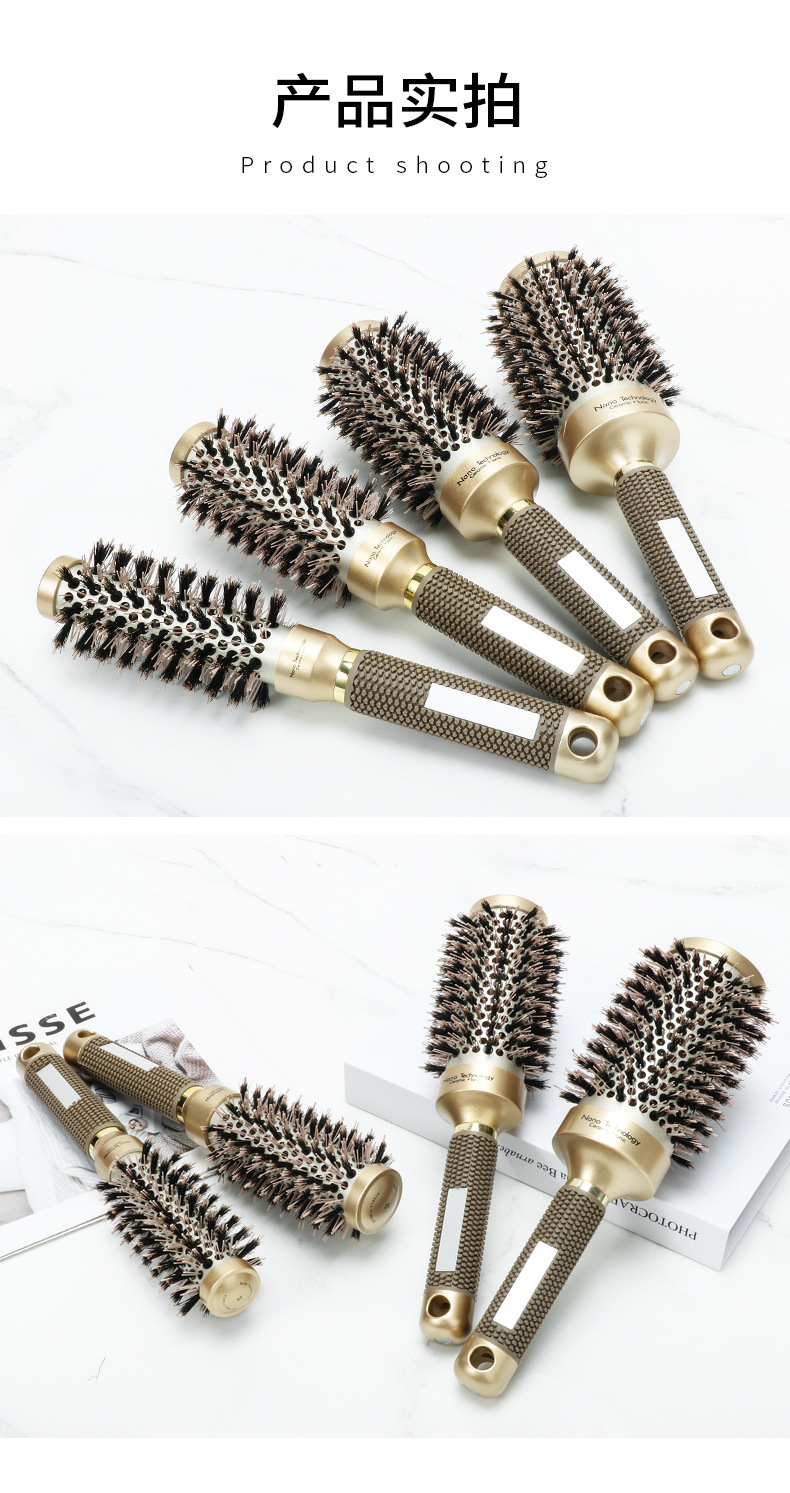 円筒巻き髪ローラー櫛髪廊造形4点セット豚毛櫛熱伝導空気アルミ管櫛陶磁器美容櫛