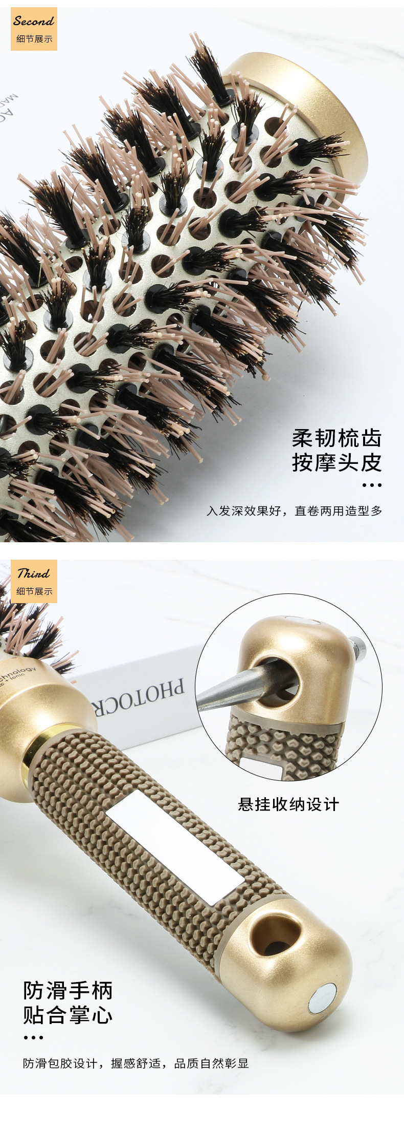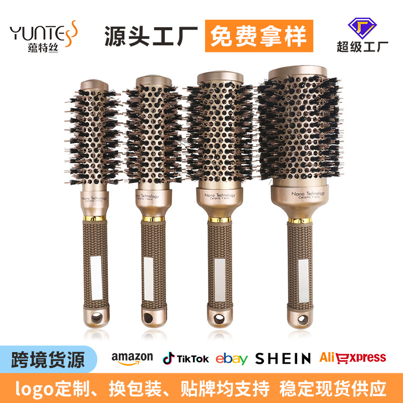 クロスボーダー爆型円筒巻き髪櫛金色陶磁器アルミ管櫛髪廊専用耐高温美髪造形ローラー櫛
