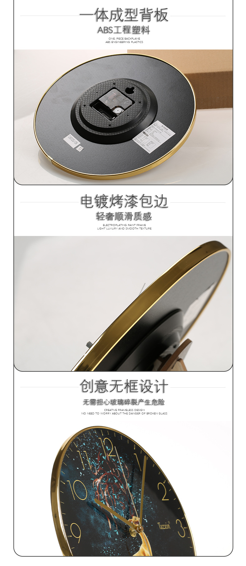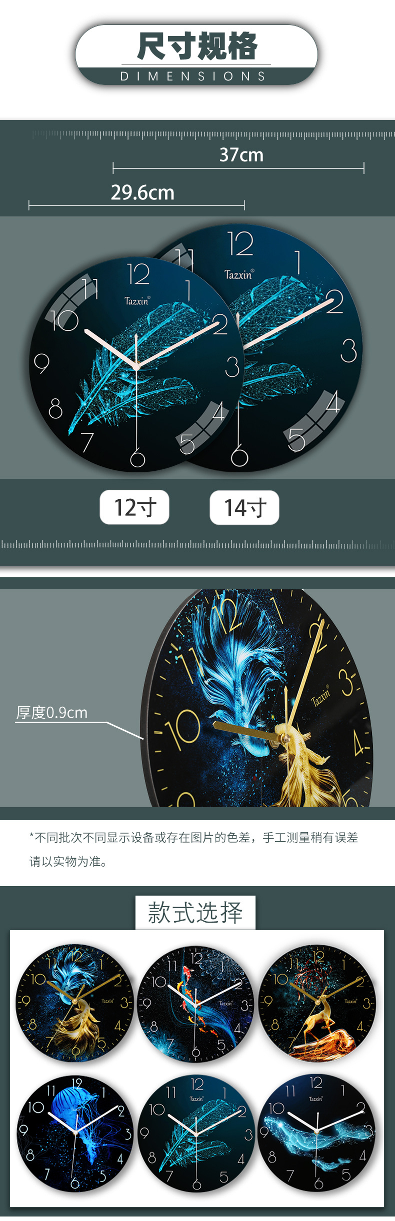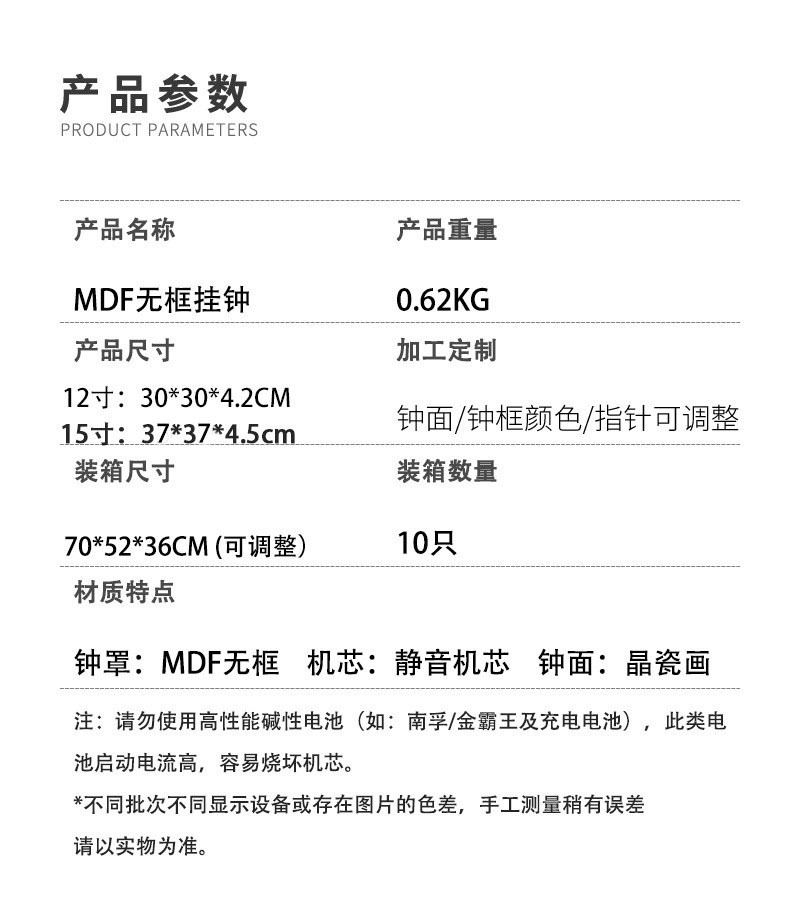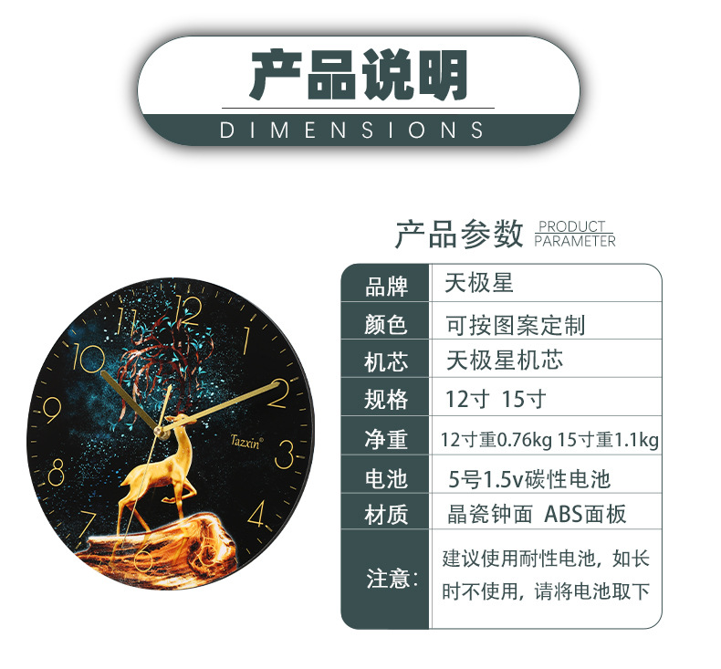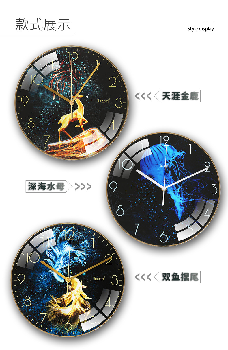 此款挂钟现货批发,夜光时效长,字体清晰,可接受各类定制!