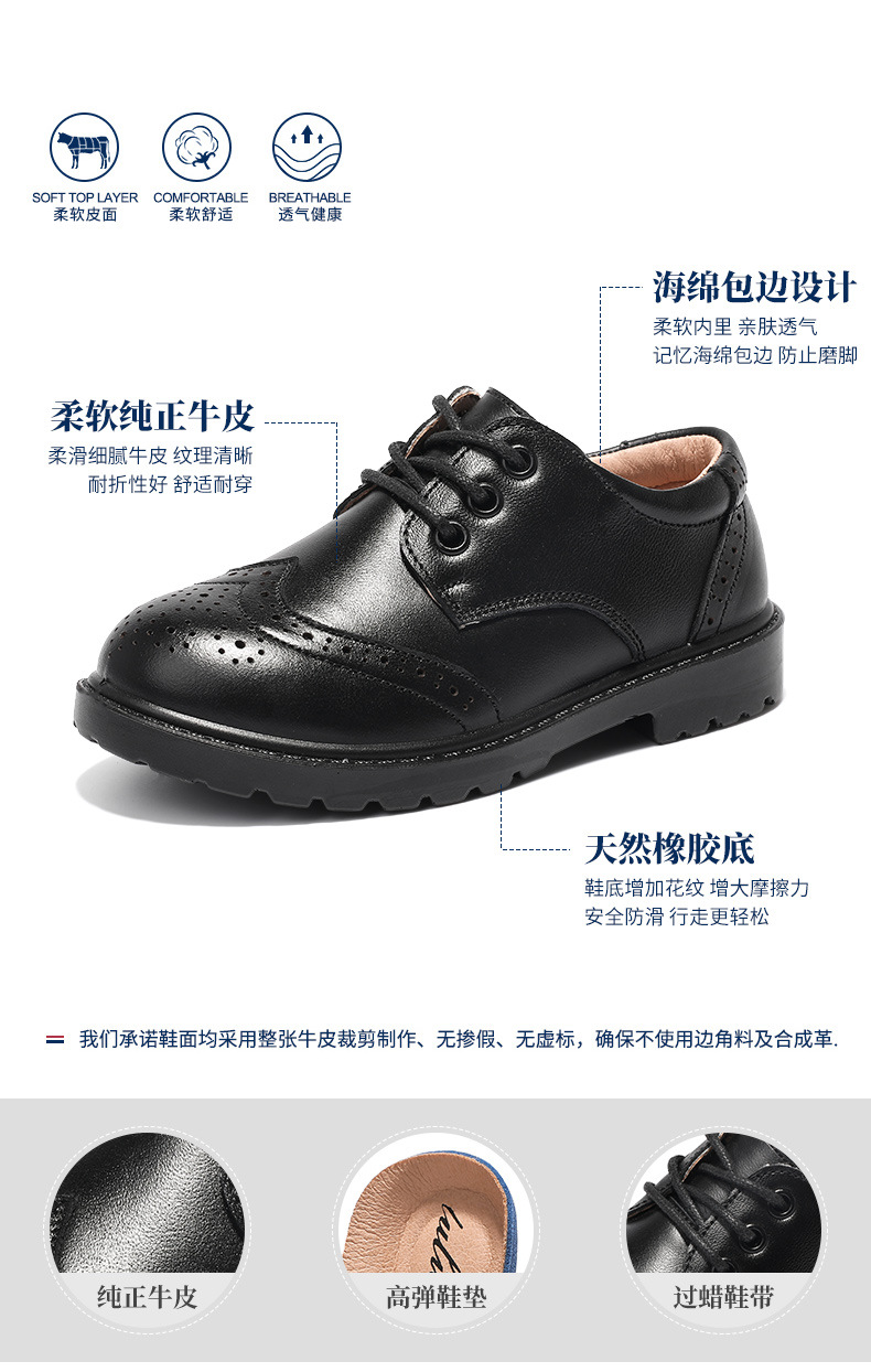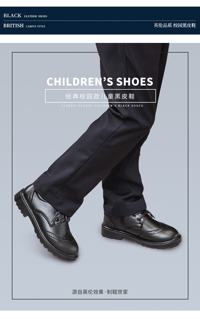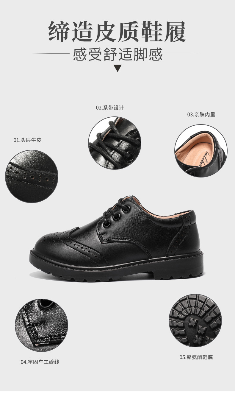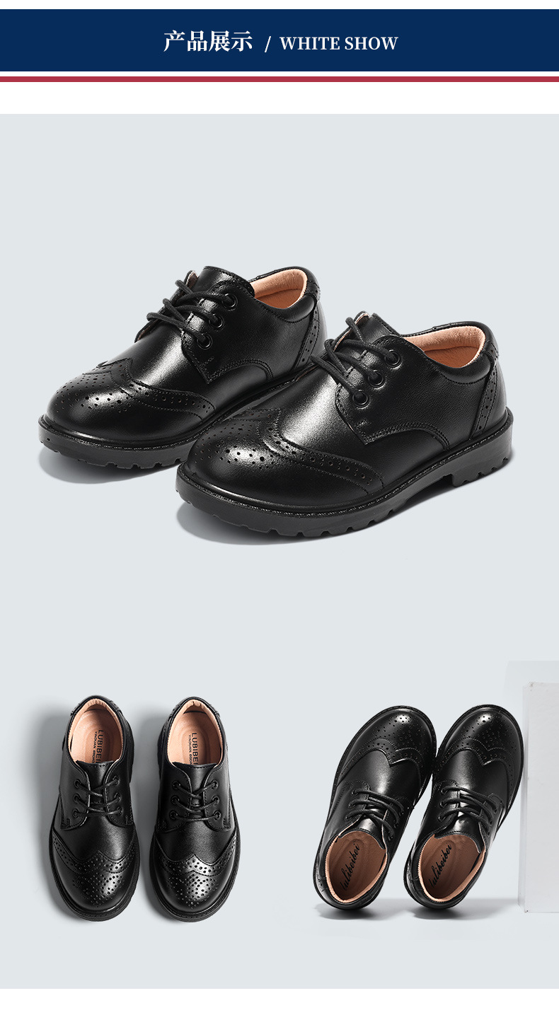 男の子の黒い靴の牛革英倫風学生の夏の新型の男の子は柔らかい底の子供の新型の靴を演出します。