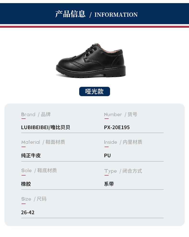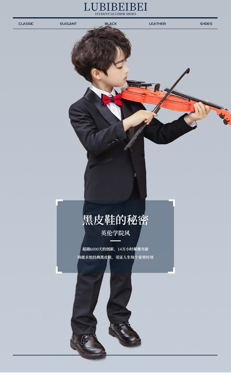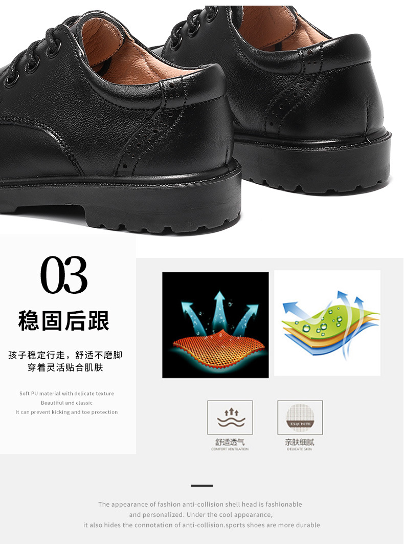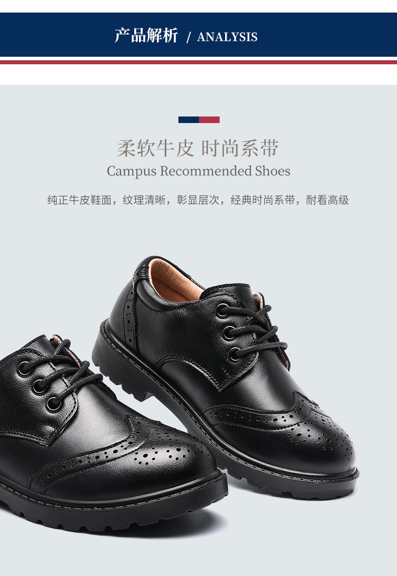 男の子の黒い靴の牛革英倫風学生の夏の新型の男の子は柔らかい底の子供の新型の靴を演出します。