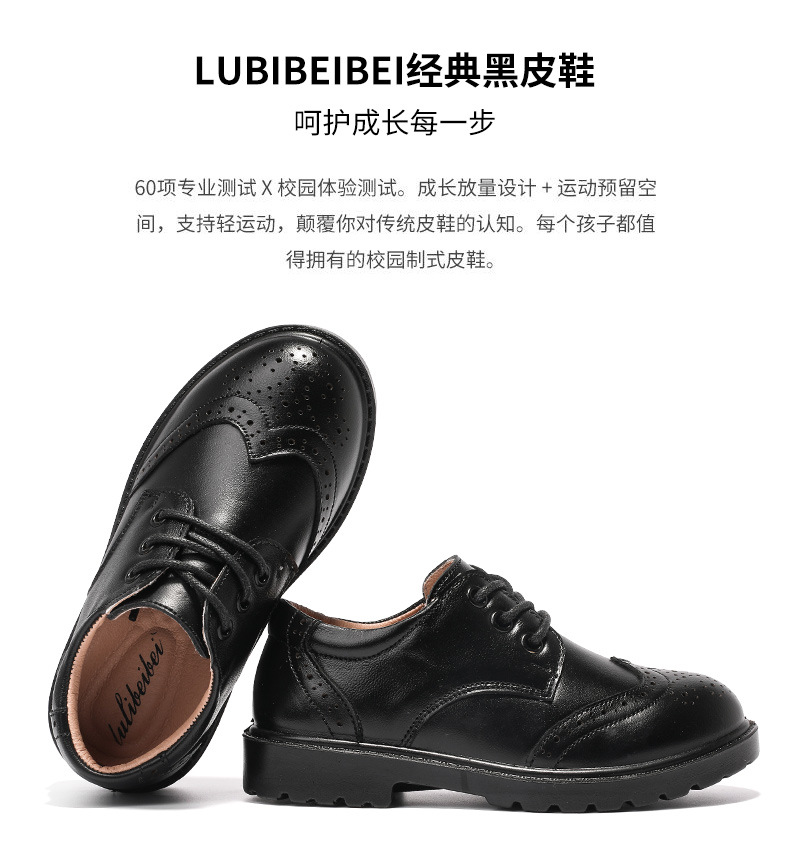 男の子の黒い靴の夏の新型春秋子供の男の子の牛革学院の柔らかい底の英倫風は靴を演出します。